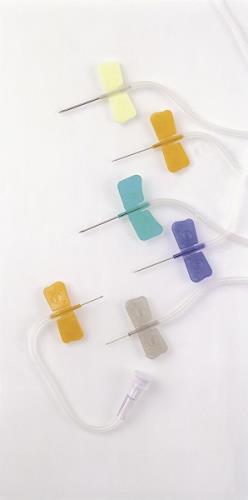 > Mit weichen, biegsamen Flügeln zum Führen und fixieren der Kanüle